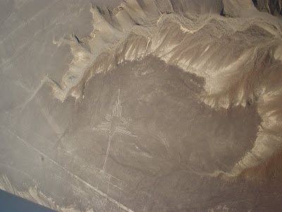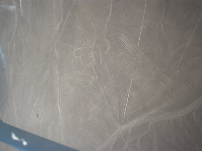 On Saturday afternoon, after driving for six hours down the cost and over some of the mountains to get to Nazca, we took a plane ride to see the Nazca Lines. It was difficult to take quality pictures out the window of the airplane. These photos are of the monkey and the hummingbird. The monkey has nine fingers and his tail resembles the design of the aqueducts in Nazca that route the underground water from the Andes to the valley so that they can grow food in this barren desert. This area get very little rain throughout the year. The Nazca Lines are thought to be some sort of agricultural calendar. Some of the straightlines correspond to the summer and winter solstices. There is also one design that is called the astronaut. This has contributed to some theories that the lines are runways for UFO’s and their were aliens in the area. I think the agricultural/astronomical calendar is much more likely. The nine fingers of the monkey represent the nine months that there is no rain in the area, as well as the growing season. The area of these designs covers 500 square kilometers. It covers a large desert area between Palpa and Nazca.