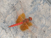 We turn off on an even bumpier road but we are soon at the lodge. We are greeted again by wet towels that are desperately needed after this dusty drive. They send us to sit on these oversized “Edith Ann” couches in the foyer. Many of the group are talking about skipping the afternoon game drive to rest and relax at the lodge pool. We are all starting to show signs of exhaustion from this rabid pace following such a rigorous climb. After a few minutes they bring us the keys and hand them out one by one. We are escorted to our rooms again by another porter (female) in bright colored African dress. After a quick drop off we zip up to the dining room for another hot lunch. At this point we are hoping for US comfort food and low and behold they have a hamburger on the menu. Half the table orders a good old burger and Kili beer. We actually have an hour or two before the next game drive. April is already down at the pool enjoying the water. We decided to put on our suits and go for a dip. The water was cool but it felt fantastic. Tina and Gina were having a belly flop contest in the pool and talking about being on Amazing Race. I think they will be a fun team to watch and really hope they make it. Lots more folks made their way down to the pool and about a third of the group decided not to go on the evening game drive. Sitting at the edge of the pool and flying all around are these beautiful bright orange dragonflies.